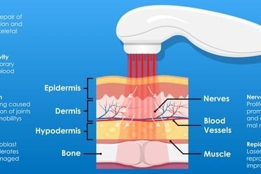 Reduces pain and inflammation while accelerating the body's natural healing process by bringing light energy to the cells of the affected area. Used for Acute and Chronic pain - sprains/strains, fracture healing and headaches.